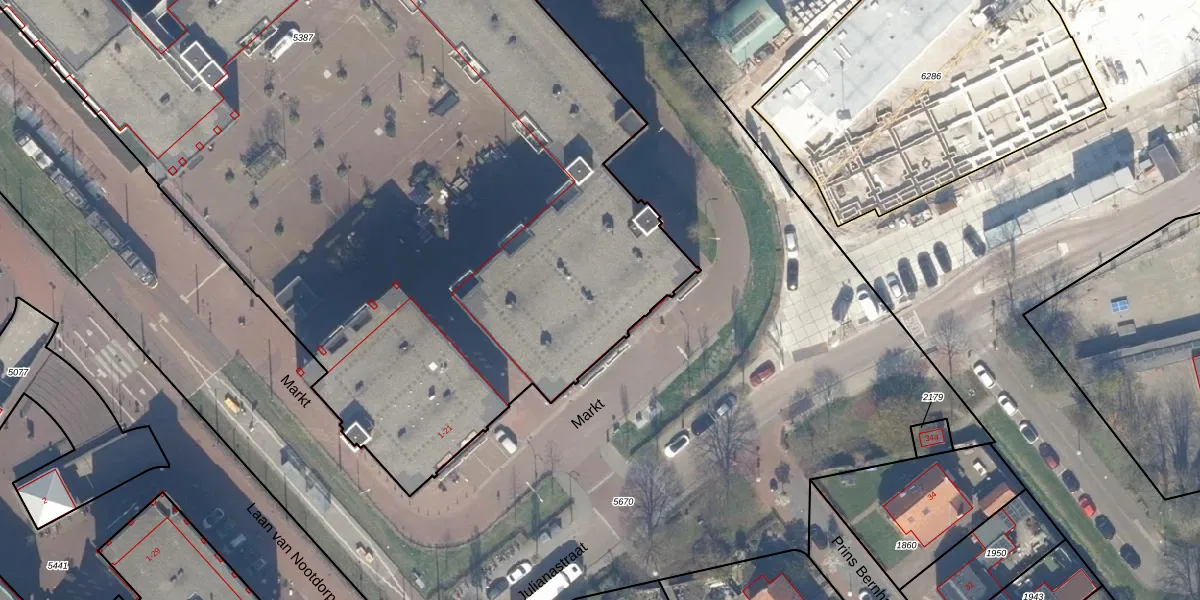 Het perceel waarop Markt 34 staat heeft een oppervlakte van 8385 m². Dit is een zeer groot perceel. De perceeloppervlakte wordt geregistreerd door het Kadaster. Gedetailleerde informatie over de maten van dit perceel kunt u vinden in het rapport Kadastrale kaart met maatvoering van Markt 34.