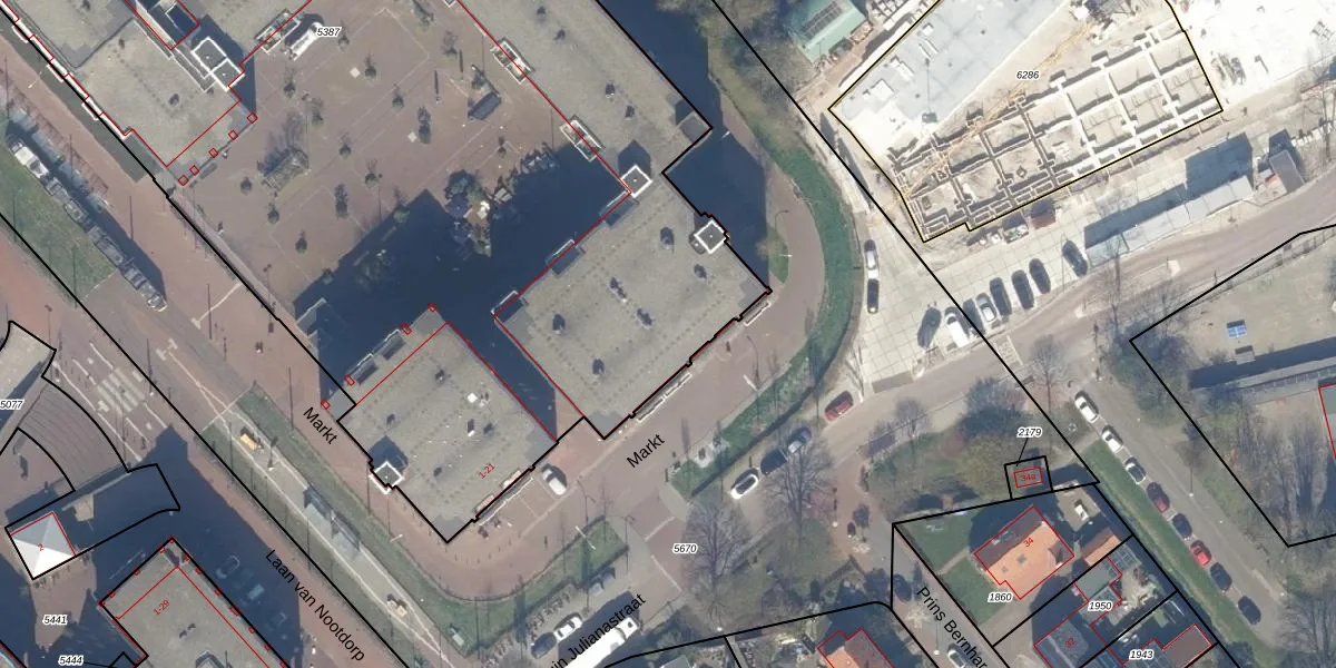 Het perceel waarop Markt 40 staat heeft een oppervlakte van 8385 m². Dit is een zeer groot perceel. De perceeloppervlakte wordt geregistreerd door het Kadaster. Gedetailleerde informatie over de maten van dit perceel kunt u vinden in het rapport Kadastrale kaart met maatvoering van Markt 40.
