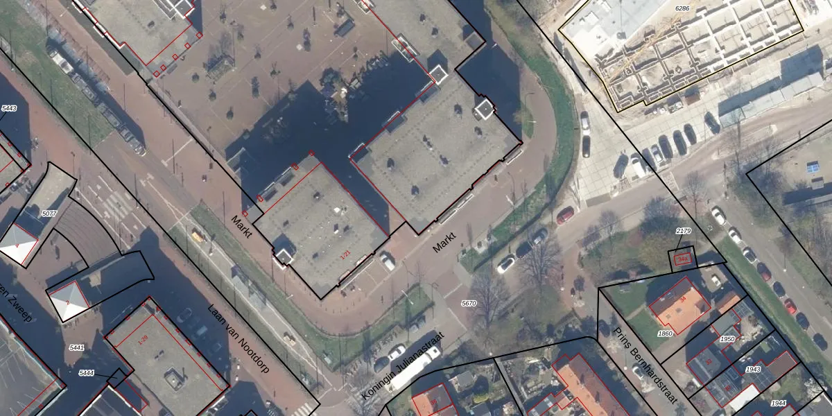 Het perceel waarop Markt 41 staat heeft een oppervlakte van 8385 m². Dit is een zeer groot perceel. De perceeloppervlakte wordt geregistreerd door het Kadaster. Gedetailleerde informatie over de maten van dit perceel kunt u vinden in het rapport Kadastrale kaart met maatvoering van Markt 41.