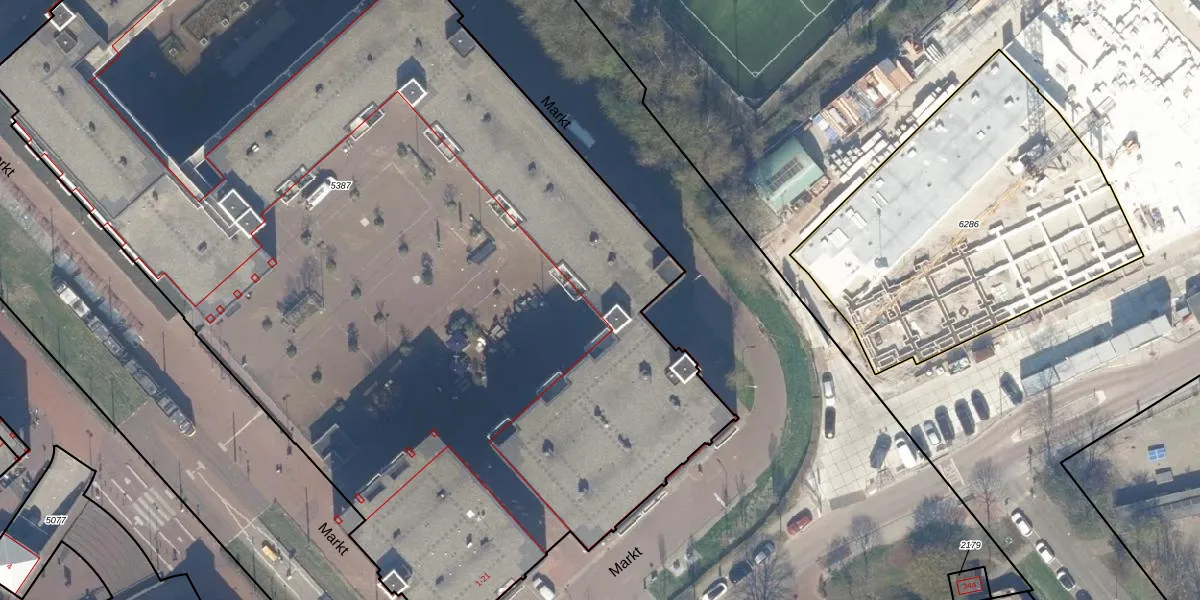 Het perceel waarop Markt 51 staat heeft een oppervlakte van 8385 m². Dit is een zeer groot perceel. De perceeloppervlakte wordt geregistreerd door het Kadaster. Gedetailleerde informatie over de maten van dit perceel kunt u vinden in het rapport Kadastrale kaart met maatvoering van Markt 51.