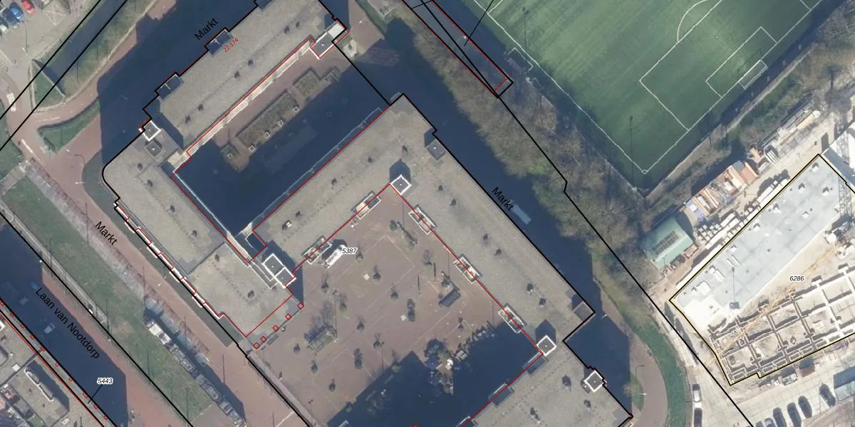 Markt 54 is gelegen op kadastraal perceel NDP01C5387. Deze kadastrale aanduiding is uniek en wordt gebruikt door het Kadaster om eigendomsrechten en andere zakelijke rechten vast te leggen. Het perceel maakt onderdeel uit van de kadastrale gemeente Nootdorp.