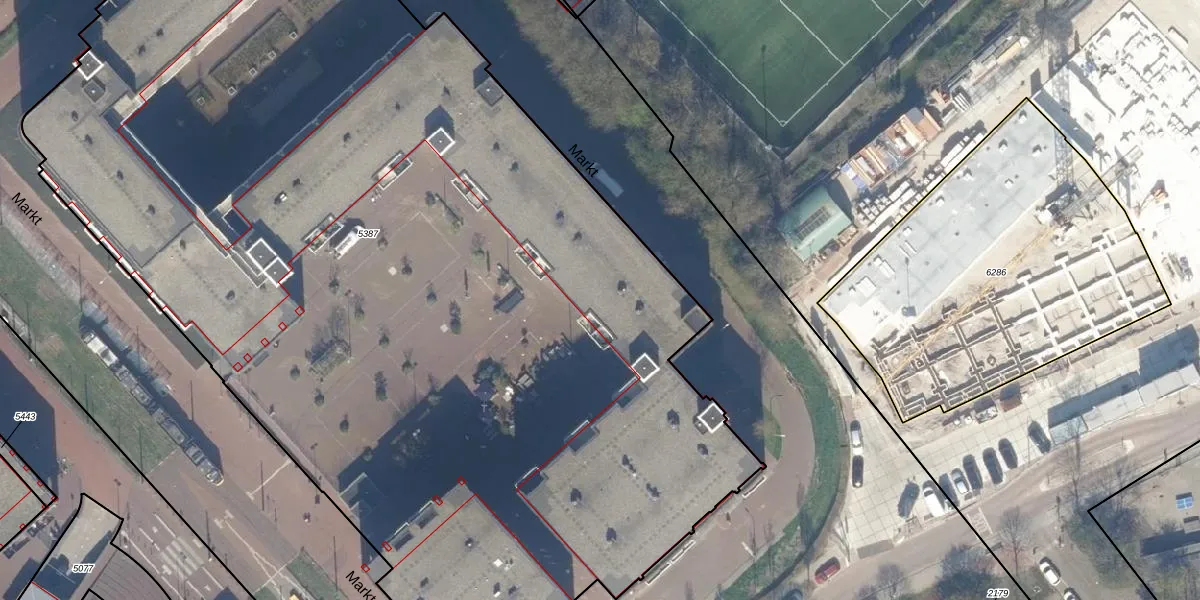 Het perceel waarop Markt 57 staat heeft een oppervlakte van 8385 m². Dit is een zeer groot perceel. De perceeloppervlakte wordt geregistreerd door het Kadaster. Gedetailleerde informatie over de maten van dit perceel kunt u vinden in het rapport Kadastrale kaart met maatvoering van Markt 57.