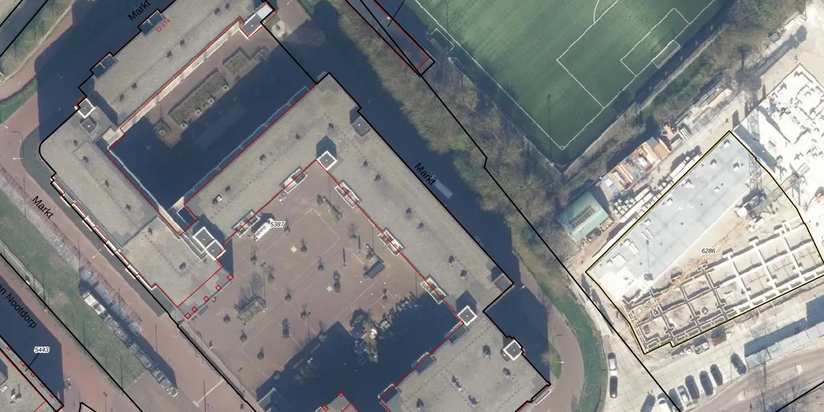 Het perceel waarop Markt 77 staat heeft een oppervlakte van 8385 m². Dit is een zeer groot perceel. De perceeloppervlakte wordt geregistreerd door het Kadaster. Gedetailleerde informatie over de maten van dit perceel kunt u vinden in het rapport Kadastrale kaart met maatvoering van Markt 77.