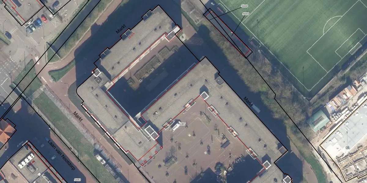 Het perceel waarop Markt 98 staat heeft een oppervlakte van 8385 m². Dit is een zeer groot perceel. De perceeloppervlakte wordt geregistreerd door het Kadaster. Gedetailleerde informatie over de maten van dit perceel kunt u vinden in het rapport Kadastrale kaart met maatvoering van Markt 98.
