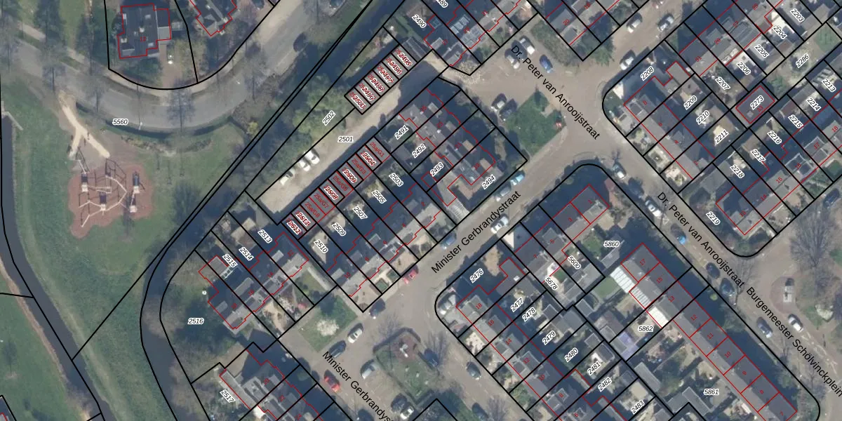 Minister Gerbrandystraat 2 is gelegen op kadastraal perceel NDP01C2503. Deze kadastrale aanduiding is uniek en wordt gebruikt door het Kadaster om eigendomsrechten en andere zakelijke rechten vast te leggen. Het perceel maakt onderdeel uit van de kadastrale gemeente Nootdorp.