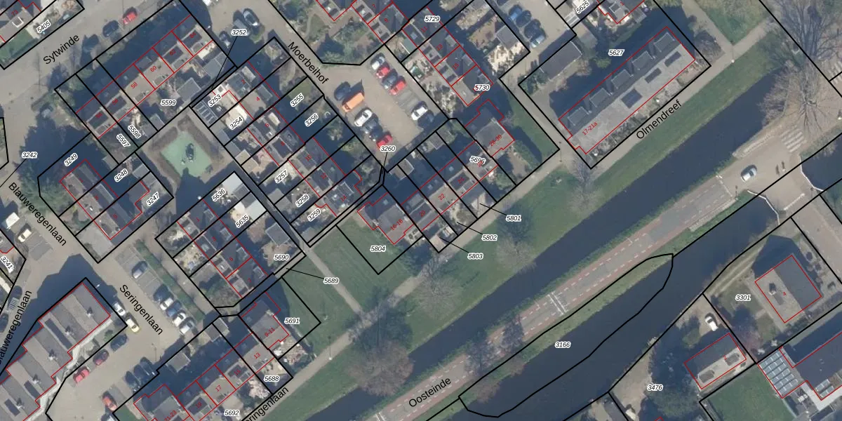 Het adres is gelegen op perceel 5803 in de sectie C en de kadastrale gemeente Nootdorp. De kadastrale aanduiding is aldus NDP01-C-5803. De gemiddelde perceelgrootte in Nootdorp is 1150,57 m². Dit perceel is kleiner: de perceeloppervlakte bedraagt 135 m². Het kleinste perceel in de kadastrale gemeente is 0 m² groot. De grootste perceeloppervlakte is 62,8 ha. Op het perceel bevinden zich geen andere adressen. De huidige grenzen van het perceel zijn digitaal in de Basisregistratie Kadaster (BRK) geregistreerd op 24-07-2014.