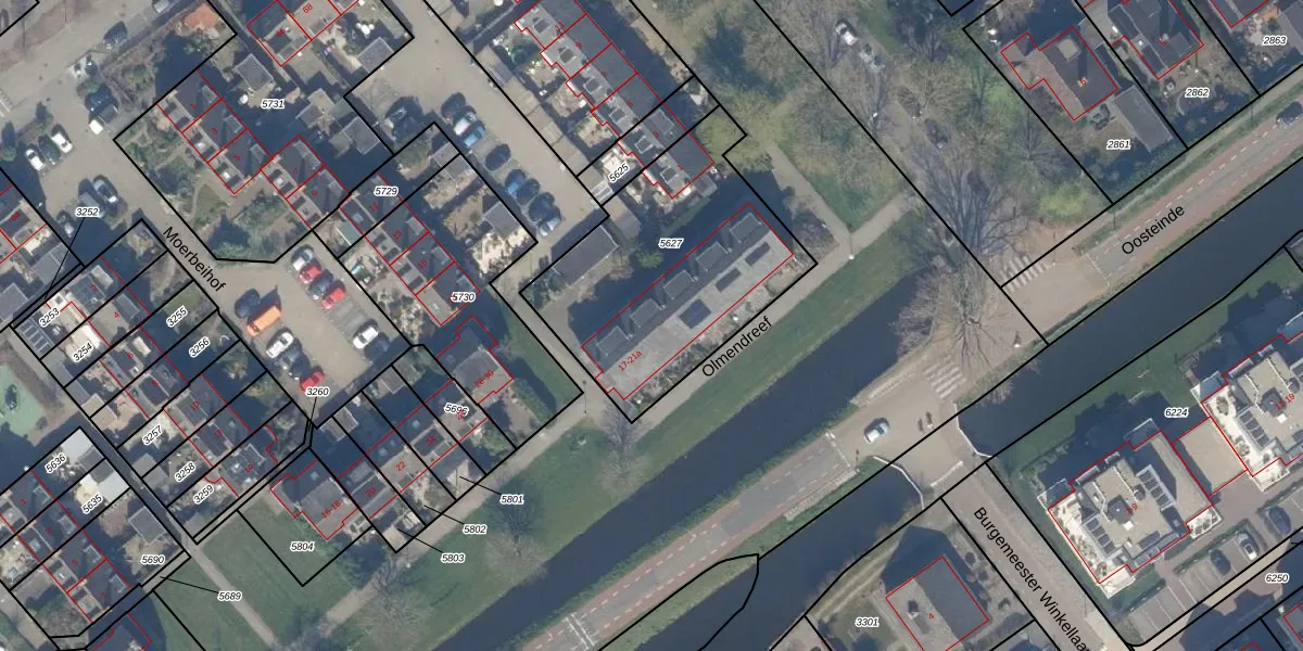 Olmendreef 18-a is gelegen op kadastraal perceel NDP01C5627. Deze kadastrale aanduiding is uniek en wordt gebruikt door het Kadaster om eigendomsrechten en andere zakelijke rechten vast te leggen. Het perceel maakt onderdeel uit van de kadastrale gemeente Nootdorp.