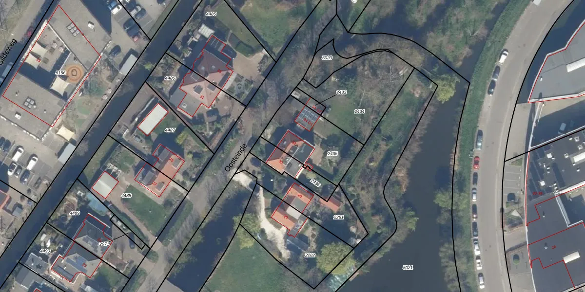 Het perceel waarop Oosteinde 32 staat heeft een oppervlakte van 525 m². Dit is een groot perceel. De perceeloppervlakte wordt geregistreerd door het Kadaster. Gedetailleerde informatie over de maten van dit perceel kunt u vinden in het rapport Kadastrale kaart met maatvoering van Oosteinde 32.
