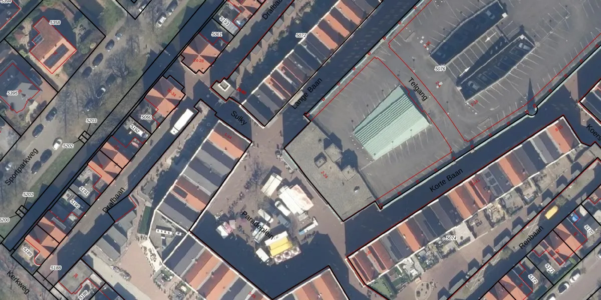 Het perceel waarop Paradeplein 24 staat heeft een oppervlakte van 5360 m². Dit is een zeer groot perceel. De perceeloppervlakte wordt geregistreerd door het Kadaster. Gedetailleerde informatie over de maten van dit perceel kunt u vinden in het rapport Kadastrale kaart met maatvoering van Paradeplein 24.