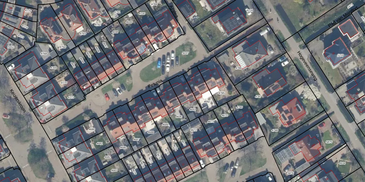 Gebruik de zoekbalk of klik op een perceel voor informatie over de adressen binnen dit perceel.