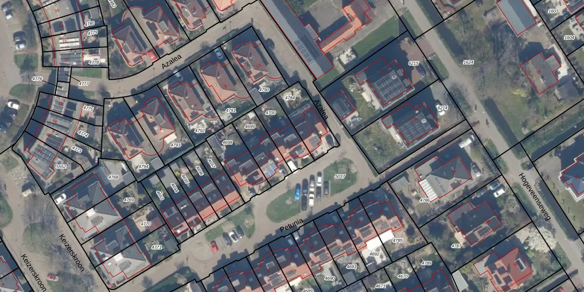 Het perceel waarop Petunia 15 staat heeft een oppervlakte van 225 m². Dit is een middelgroot perceel. De perceeloppervlakte wordt geregistreerd door het Kadaster. Gedetailleerde informatie over de maten van dit perceel kunt u vinden in het rapport Kadastrale kaart met maatvoering van Petunia 15.