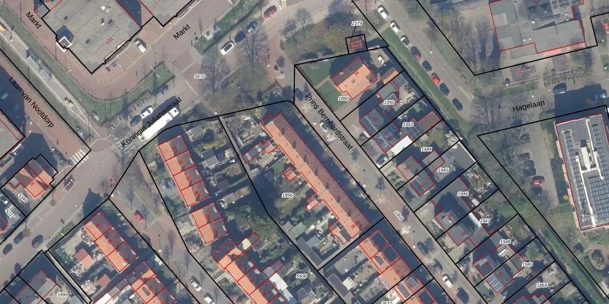 Het perceel waarop Prins Bernhardstraat 35 staat heeft een oppervlakte van 1510 m². Dit is een zeer groot perceel. De perceeloppervlakte wordt geregistreerd door het Kadaster. Gedetailleerde informatie over de maten van dit perceel kunt u vinden in het rapport Kadastrale kaart met maatvoering van Prins Bernhardstraat 35.