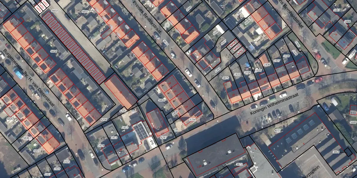 Het perceel waarop Prinses Beatrixstraat 1-c staat heeft een oppervlakte van 427 m². Dit is een groot perceel. De perceeloppervlakte wordt geregistreerd door het Kadaster. Gedetailleerde informatie over de maten van dit perceel kunt u vinden in het rapport Kadastrale kaart met maatvoering van Prinses Beatrixstraat 1-c.