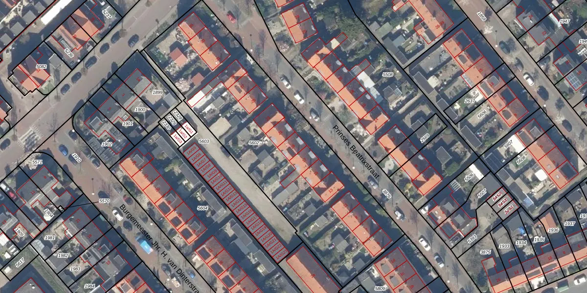 Het perceel waarop Prinses Beatrixstraat 19 staat heeft een oppervlakte van 2884 m². Dit is een zeer groot perceel. De perceeloppervlakte wordt geregistreerd door het Kadaster. Gedetailleerde informatie over de maten van dit perceel kunt u vinden in het rapport Kadastrale kaart met maatvoering van Prinses Beatrixstraat 19.