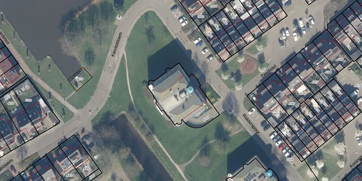 Ridderspoor 14 is gelegen op kadastraal perceel NDP01C4297. Deze kadastrale aanduiding is uniek en wordt gebruikt door het Kadaster om eigendomsrechten en andere zakelijke rechten vast te leggen. Het perceel maakt onderdeel uit van de kadastrale gemeente Nootdorp.