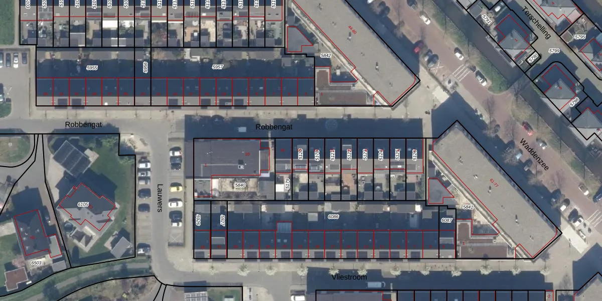 Het perceel waarop Robbengat 16 staat heeft een oppervlakte van 113 m². Dit is een middelgroot perceel. De perceeloppervlakte wordt geregistreerd door het Kadaster. Gedetailleerde informatie over de maten van dit perceel kunt u vinden in het rapport Kadastrale kaart met maatvoering van Robbengat 16.