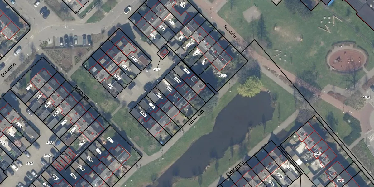 Het perceel waarop Rosarium 15 staat heeft een oppervlakte van 166 m². Dit is een middelgroot perceel. De perceeloppervlakte wordt geregistreerd door het Kadaster. Gedetailleerde informatie over de maten van dit perceel kunt u vinden in het rapport Kadastrale kaart met maatvoering van Rosarium 15.