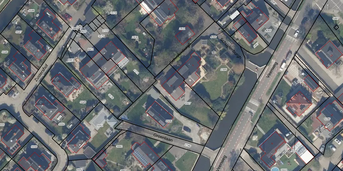 Het perceel waarop Schuylenburgh 2 staat heeft een oppervlakte van 614 m². Dit is een groot perceel. De perceeloppervlakte wordt geregistreerd door het Kadaster. Gedetailleerde informatie over de maten van dit perceel kunt u vinden in het rapport Kadastrale kaart met maatvoering van Schuylenburgh 2.