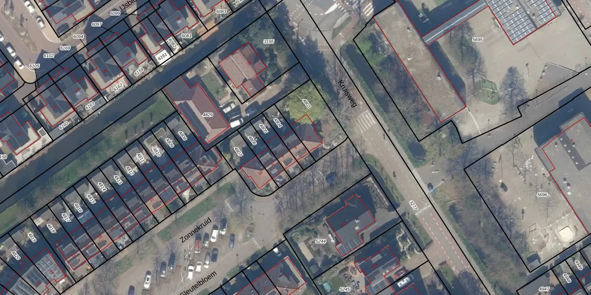 Gebruik de zoekbalk of klik op een perceel voor informatie over de adressen binnen dit perceel.
