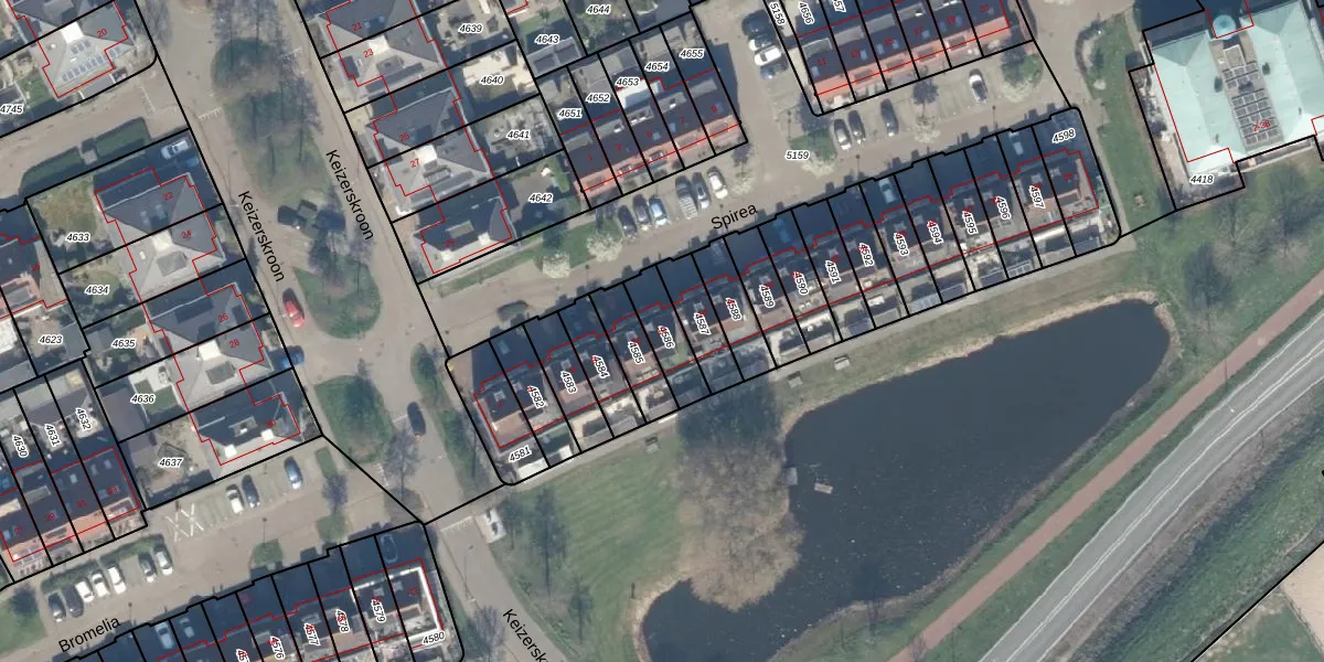 Het perceel waarop Spirea 12 staat heeft een oppervlakte van 116 m². Dit is een middelgroot perceel. De perceeloppervlakte wordt geregistreerd door het Kadaster. Gedetailleerde informatie over de maten van dit perceel kunt u vinden in het rapport Kadastrale kaart met maatvoering van Spirea 12.