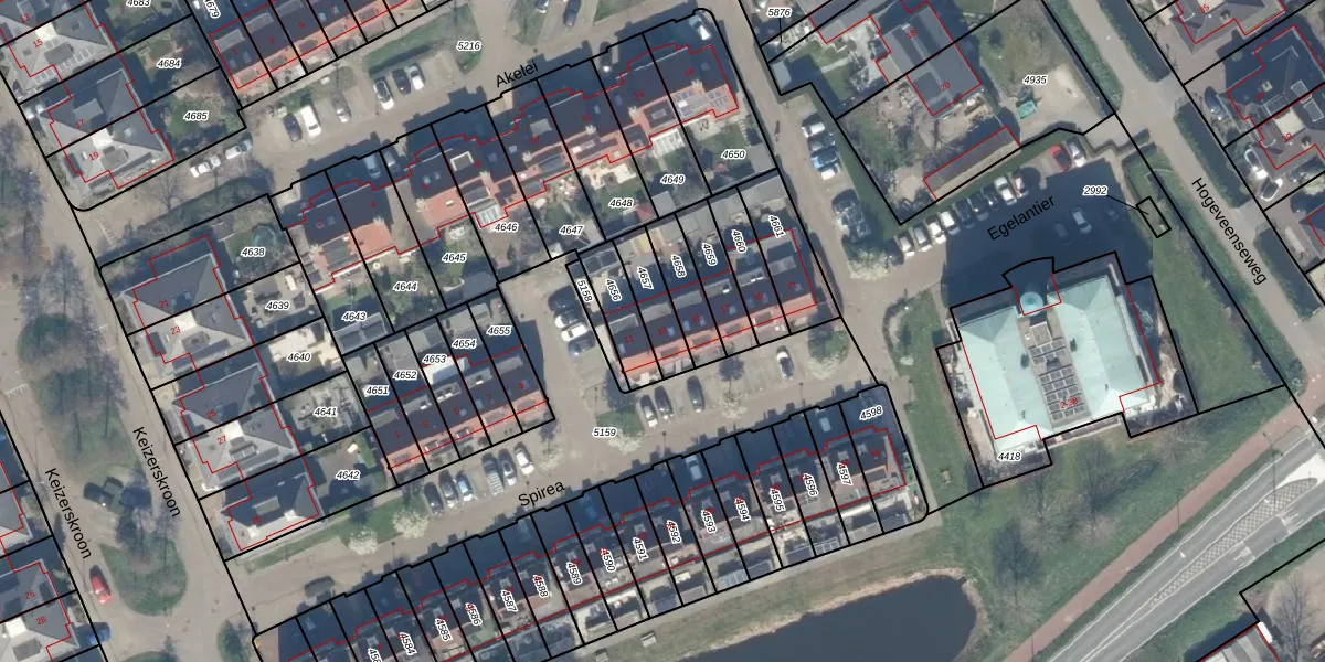 Het perceel waarop Spirea 13 staat heeft een oppervlakte van 116 m². Dit is een middelgroot perceel. De perceeloppervlakte wordt geregistreerd door het Kadaster. Gedetailleerde informatie over de maten van dit perceel kunt u vinden in het rapport Kadastrale kaart met maatvoering van Spirea 13.