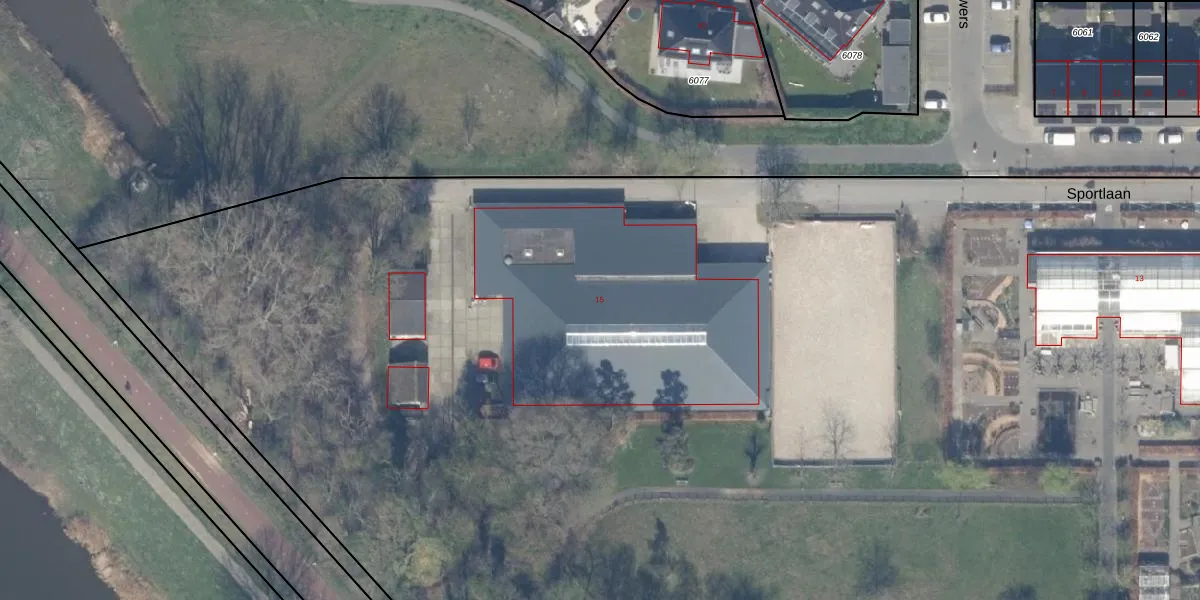 Het perceel waarop Sportlaan 15 staat heeft een oppervlakte van 14,4 ha. Dit is een zeer groot perceel. De perceeloppervlakte wordt geregistreerd door het Kadaster. Gedetailleerde informatie over de maten van dit perceel kunt u vinden in het rapport Kadastrale kaart met maatvoering van Sportlaan 15.