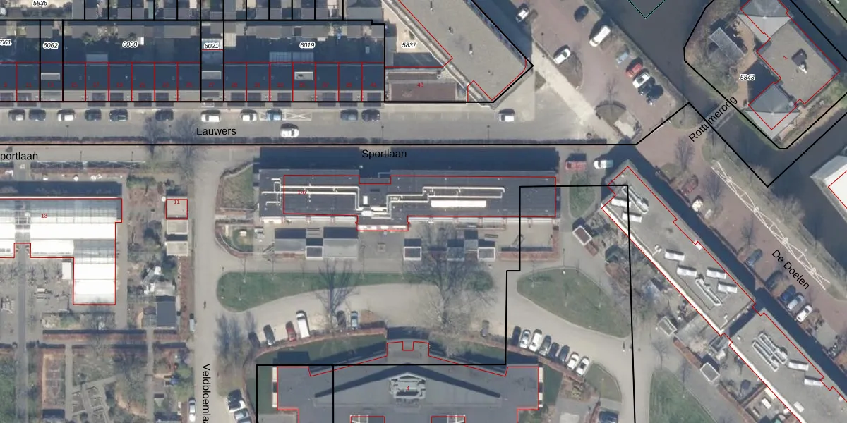 Sportlaan 5 is gelegen op kadastraal perceel NDP01A6081. Deze kadastrale aanduiding is uniek en wordt gebruikt door het Kadaster om eigendomsrechten en andere zakelijke rechten vast te leggen. Het perceel maakt onderdeel uit van de kadastrale gemeente Nootdorp.