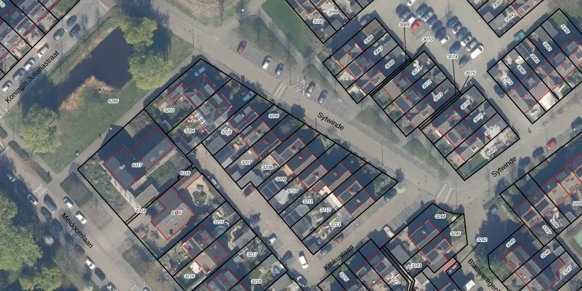 Het perceel waarop Sytwinde 38 staat heeft een oppervlakte van 181 m². Dit is een middelgroot perceel. De perceeloppervlakte wordt geregistreerd door het Kadaster. Gedetailleerde informatie over de maten van dit perceel kunt u vinden in het rapport Kadastrale kaart met maatvoering van Sytwinde 38.