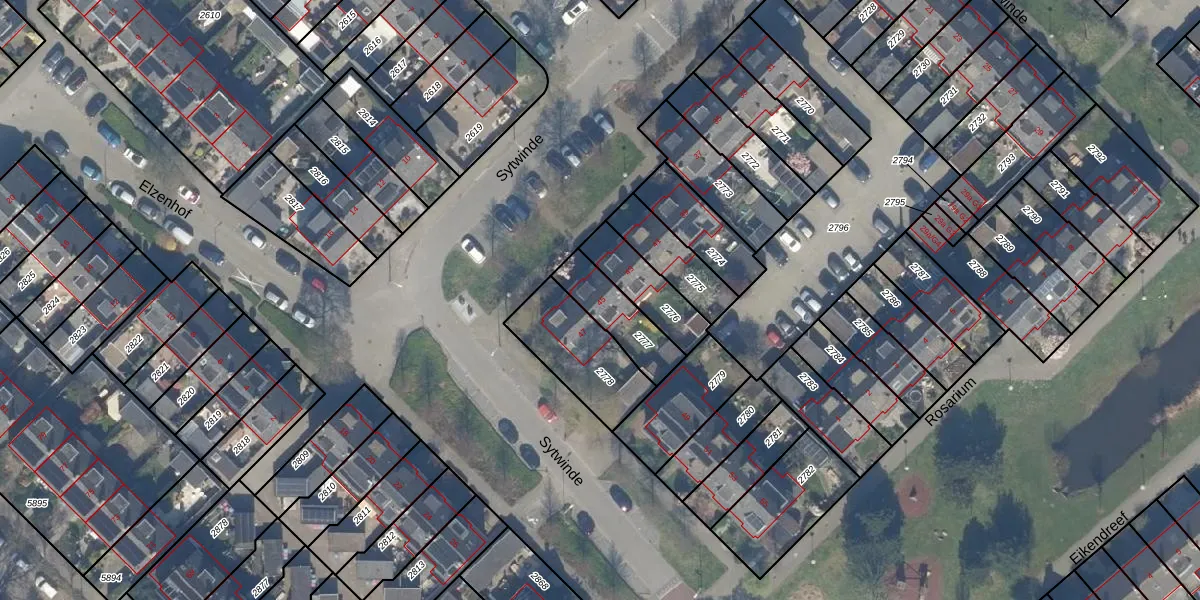 Gebruik de zoekbalk of klik op een perceel voor informatie over de adressen binnen dit perceel.