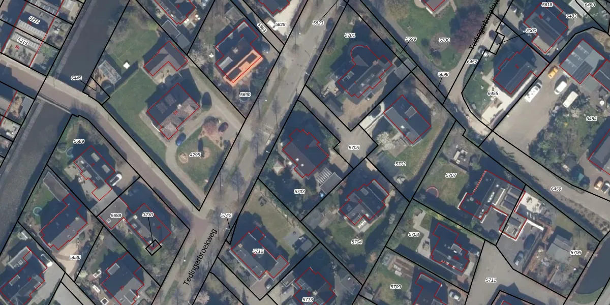 Tedingerbroekweg 13 is gelegen op kadastraal perceel NDP01A5703. Deze kadastrale aanduiding is uniek en wordt gebruikt door het Kadaster om eigendomsrechten en andere zakelijke rechten vast te leggen. Het perceel maakt onderdeel uit van de kadastrale gemeente Nootdorp.