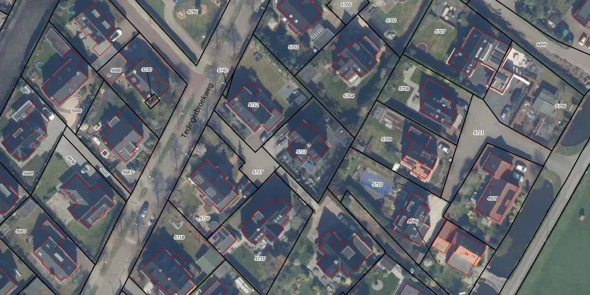 Tedingerbroekweg 17 is gelegen op kadastraal perceel NDP01A5713. Deze kadastrale aanduiding is uniek en wordt gebruikt door het Kadaster om eigendomsrechten en andere zakelijke rechten vast te leggen. Het perceel maakt onderdeel uit van de kadastrale gemeente Nootdorp.
