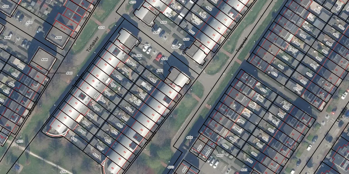 Het perceel waarop Trapveld 24 staat heeft een oppervlakte van 32 m². Dit is een klein perceel. De perceeloppervlakte wordt geregistreerd door het Kadaster. Gedetailleerde informatie over de maten van dit perceel kunt u vinden in het rapport Kadastrale kaart met maatvoering van Trapveld 24.