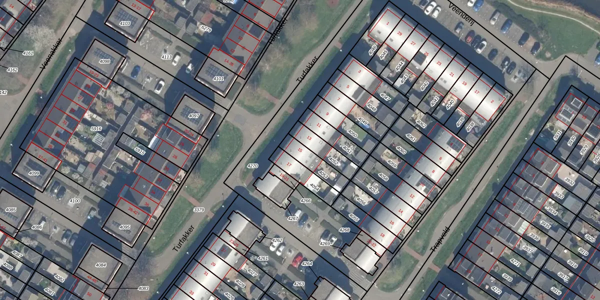 Gebruik de zoekbalk of klik op een perceel voor informatie over de adressen binnen dit perceel.