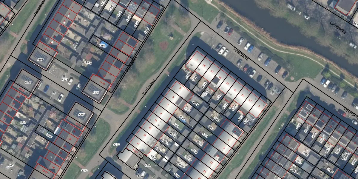 Gebruik de zoekbalk of klik op een perceel voor informatie over de adressen binnen dit perceel.