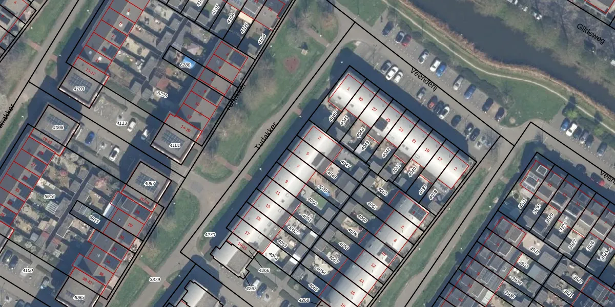 Gebruik de zoekbalk of klik op een perceel voor informatie over de adressen binnen dit perceel.