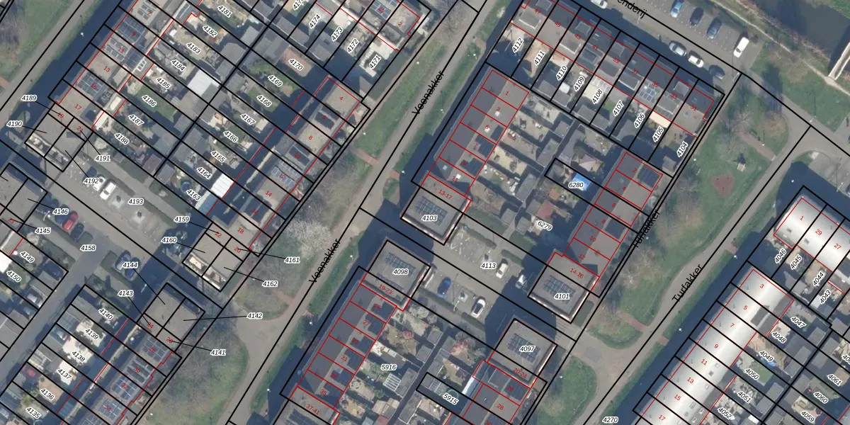 Het perceel waarop Veenakker 13 staat heeft een oppervlakte van 104 m². Dit is een middelgroot perceel. De perceeloppervlakte wordt geregistreerd door het Kadaster. Gedetailleerde informatie over de maten van dit perceel kunt u vinden in het rapport Kadastrale kaart met maatvoering van Veenakker 13.
