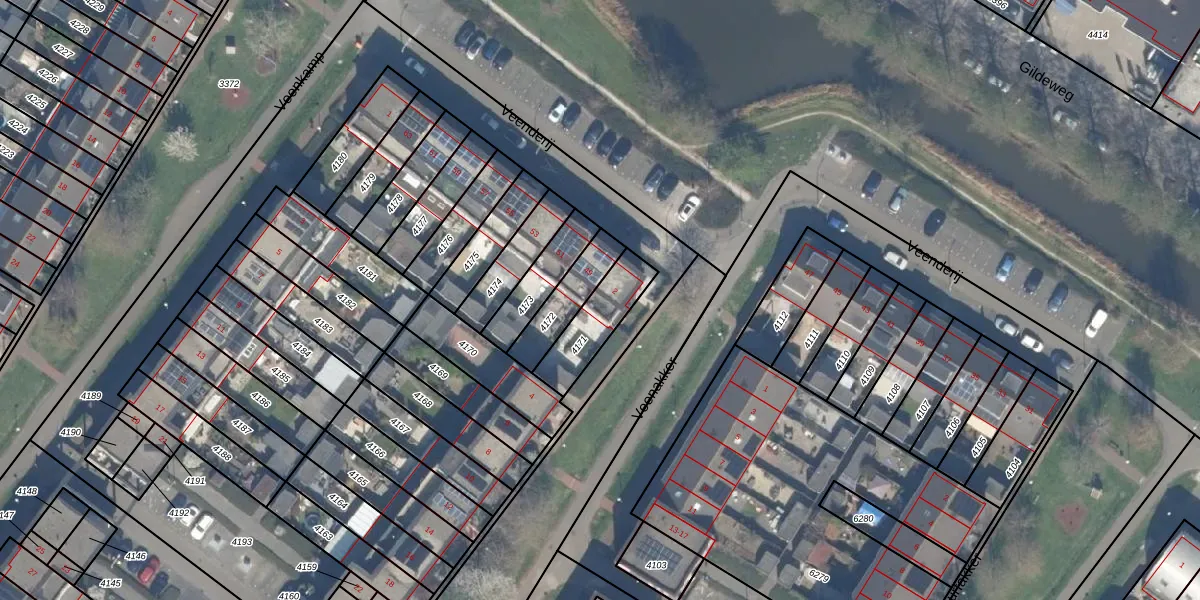 Gebruik de zoekbalk of klik op een perceel voor informatie over de adressen binnen dit perceel.