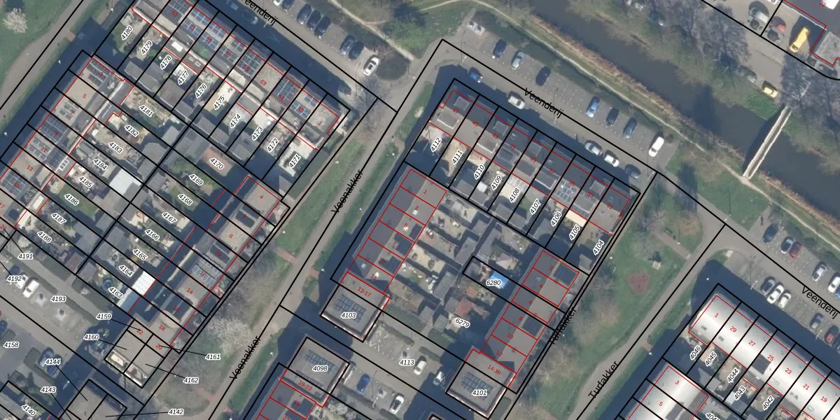 Het perceel waarop Veenakker 3 staat heeft een oppervlakte van 1593 m². Dit is een zeer groot perceel. De perceeloppervlakte wordt geregistreerd door het Kadaster. Gedetailleerde informatie over de maten van dit perceel kunt u vinden in het rapport Kadastrale kaart met maatvoering van Veenakker 3.