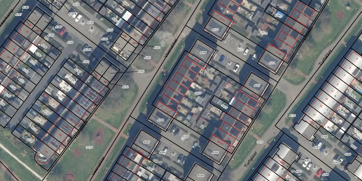 Veenakker 31 is gelegen op kadastraal perceel NDP01A5916. Deze kadastrale aanduiding is uniek en wordt gebruikt door het Kadaster om eigendomsrechten en andere zakelijke rechten vast te leggen. Het perceel maakt onderdeel uit van de kadastrale gemeente Nootdorp.