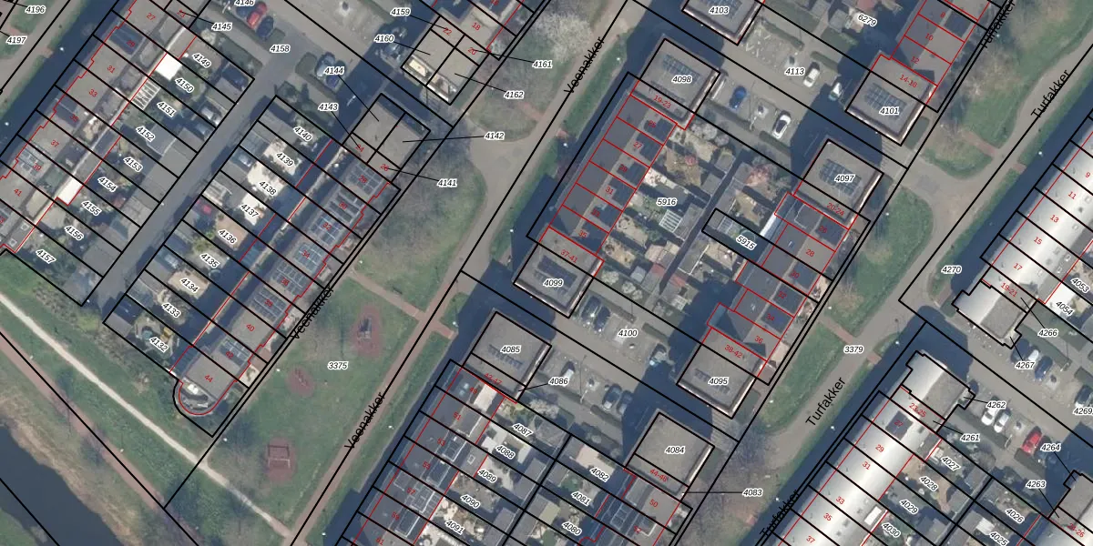 Het perceel waarop Veenakker 37 staat heeft een oppervlakte van 104 m². Dit is een middelgroot perceel. De perceeloppervlakte wordt geregistreerd door het Kadaster. Gedetailleerde informatie over de maten van dit perceel kunt u vinden in het rapport Kadastrale kaart met maatvoering van Veenakker 37.