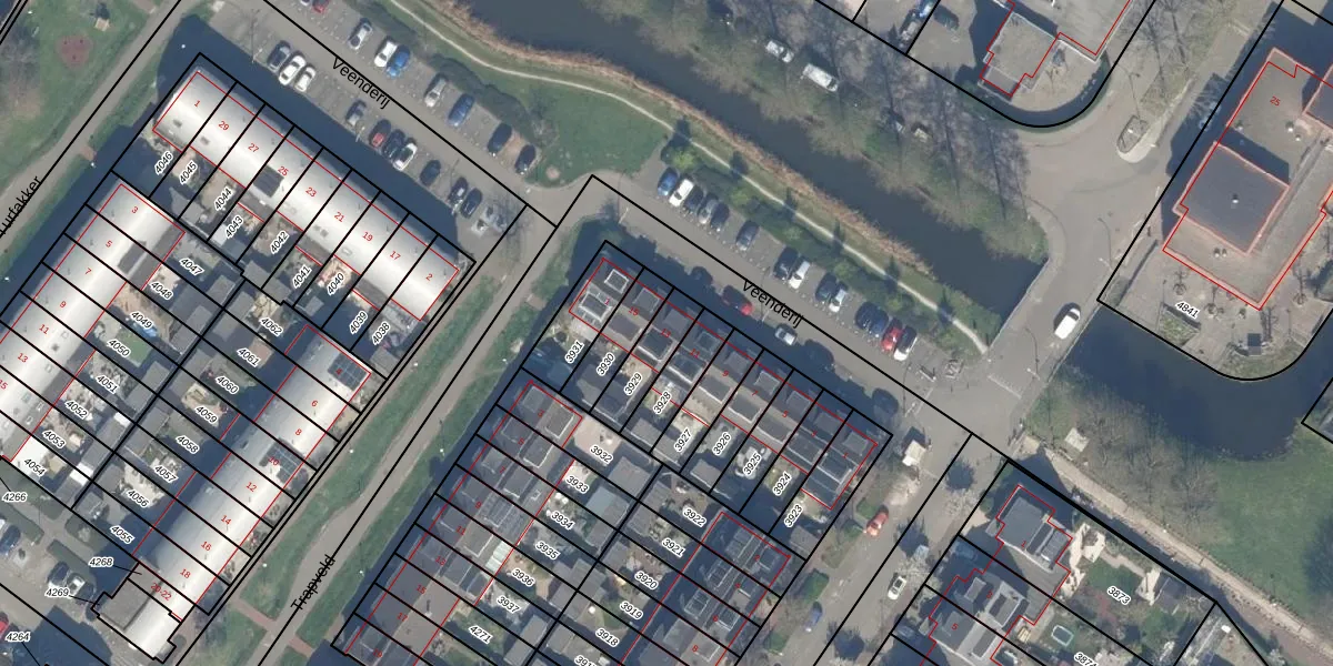 Gebruik de zoekbalk of klik op een perceel voor informatie over de adressen binnen dit perceel.