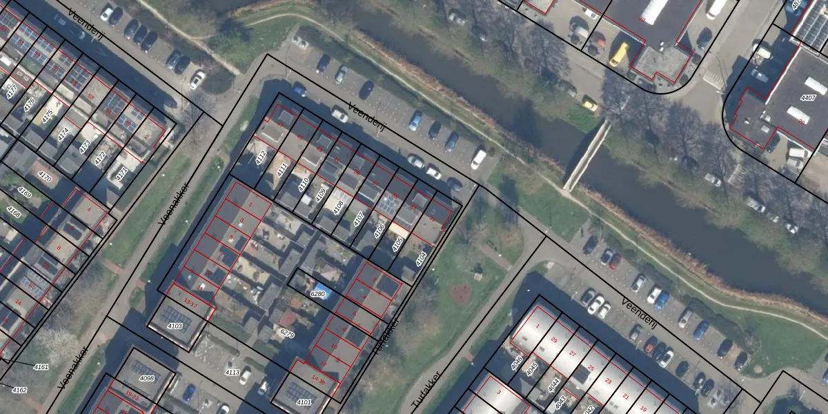 Het perceel waarop Veenderij 33 staat heeft een oppervlakte van 124 m². Dit is een middelgroot perceel. De perceeloppervlakte wordt geregistreerd door het Kadaster. Gedetailleerde informatie over de maten van dit perceel kunt u vinden in het rapport Kadastrale kaart met maatvoering van Veenderij 33.