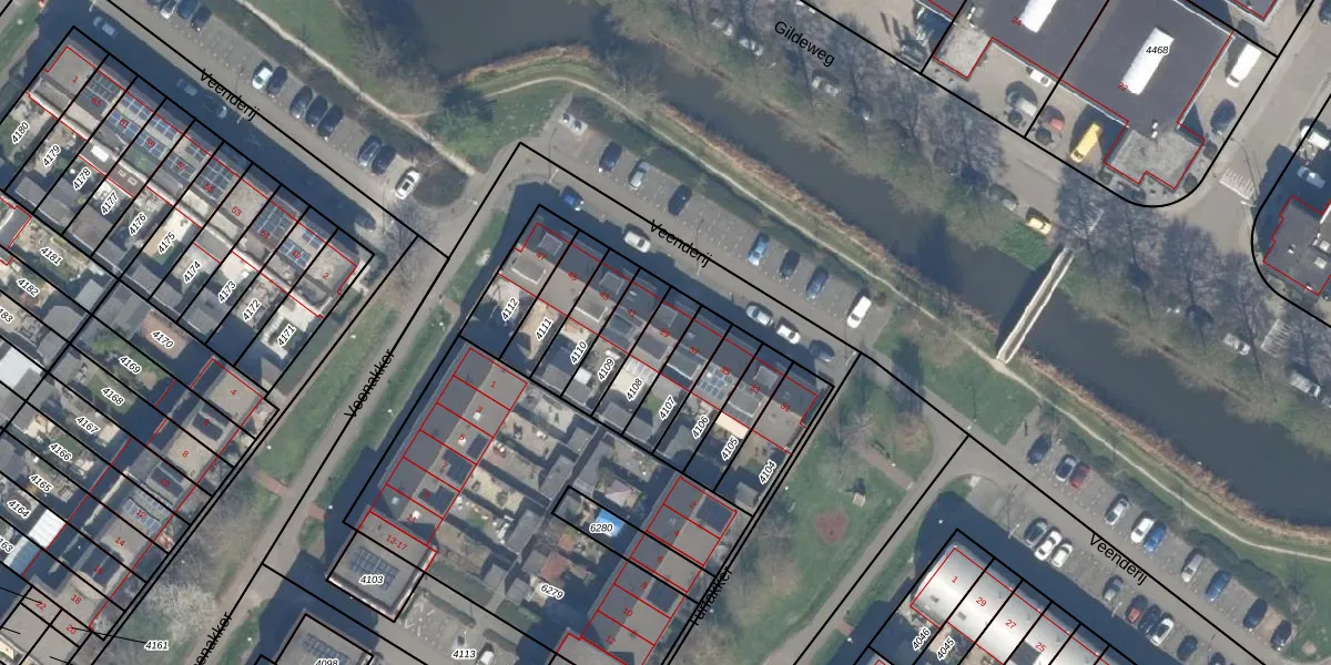 Gebruik de zoekbalk of klik op een perceel voor informatie over de adressen binnen dit perceel.