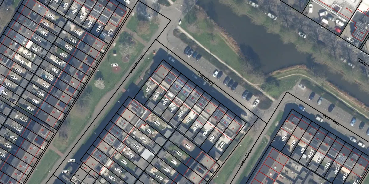 Gebruik de zoekbalk of klik op een perceel voor informatie over de adressen binnen dit perceel.