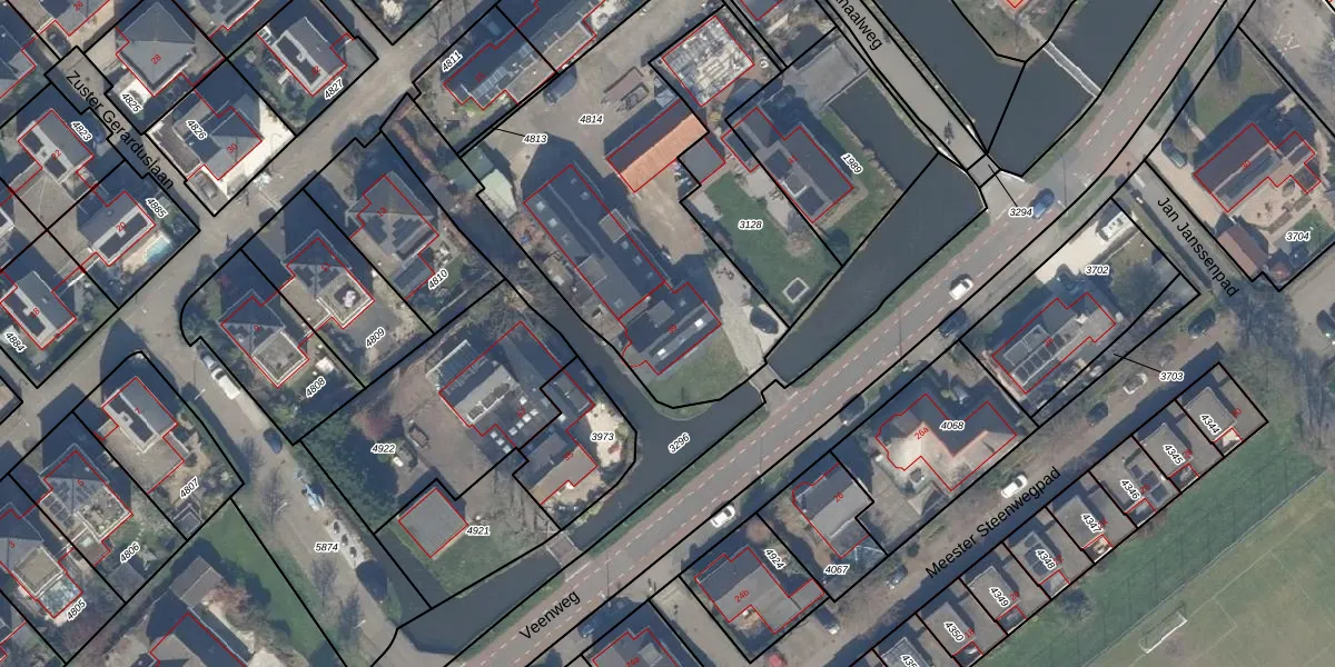 Veenweg 39 is gelegen op kadastraal perceel NDP01A4814. Deze kadastrale aanduiding is uniek en wordt gebruikt door het Kadaster om eigendomsrechten en andere zakelijke rechten vast te leggen. Het perceel maakt onderdeel uit van de kadastrale gemeente Nootdorp.