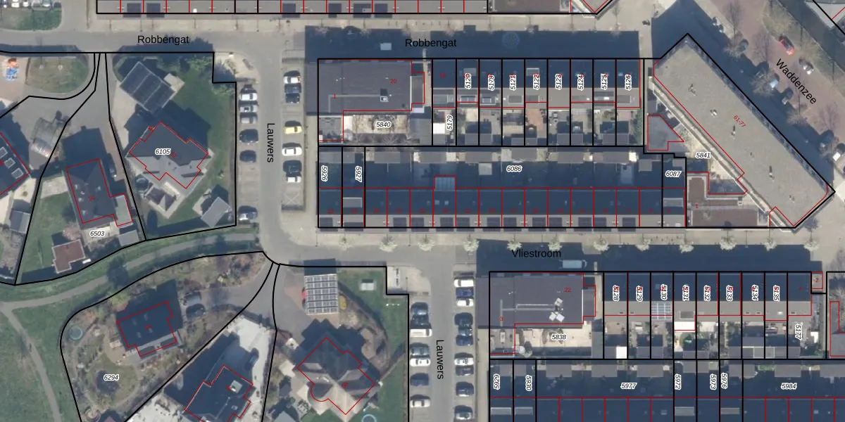 Het perceel waarop Vliestroom 25 staat heeft een oppervlakte van 1347 m². Dit is een zeer groot perceel. De perceeloppervlakte wordt geregistreerd door het Kadaster. Gedetailleerde informatie over de maten van dit perceel kunt u vinden in het rapport Kadastrale kaart met maatvoering van Vliestroom 25.