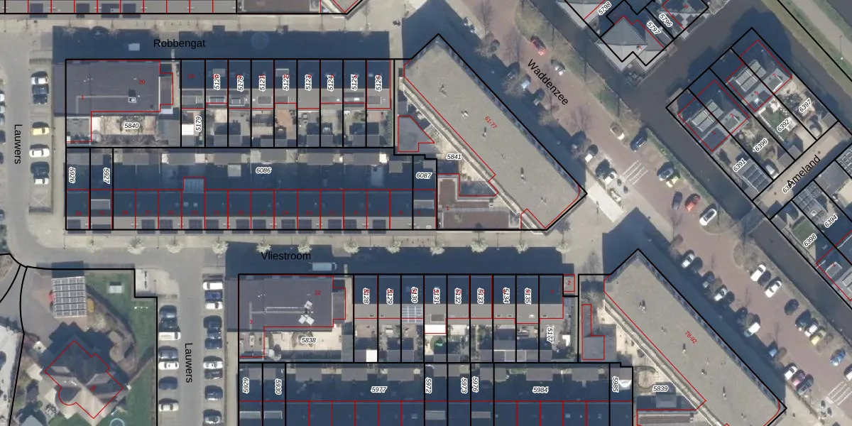 Gebruik de zoekbalk of klik op een perceel voor informatie over de adressen binnen dit perceel.