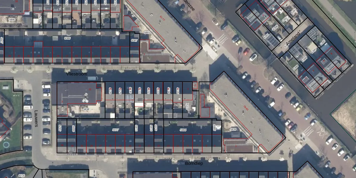 Het perceel waarop Vliestroom 6 staat heeft een oppervlakte van 112 m². Dit is een middelgroot perceel. De perceeloppervlakte wordt geregistreerd door het Kadaster. Gedetailleerde informatie over de maten van dit perceel kunt u vinden in het rapport Kadastrale kaart met maatvoering van Vliestroom 6.
