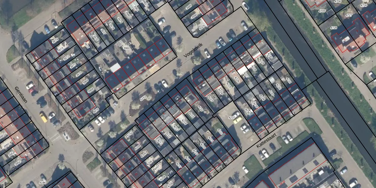 Gebruik de zoekbalk of klik op een perceel voor informatie over de adressen binnen dit perceel.