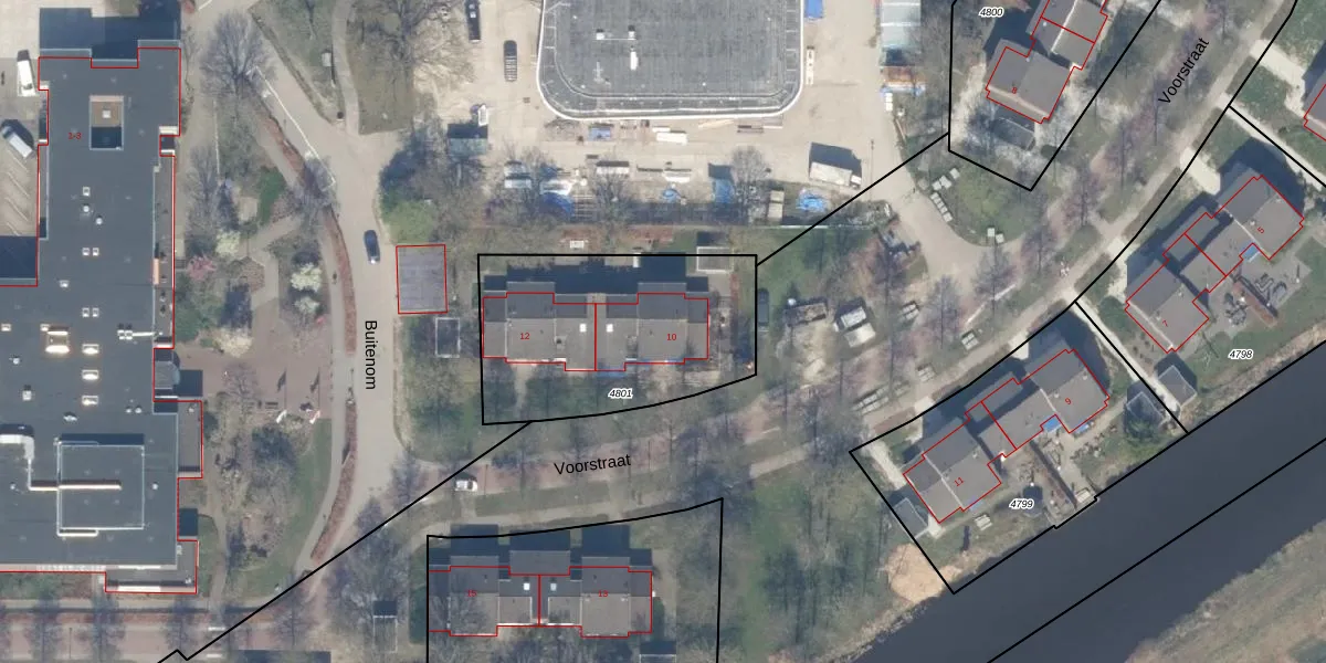 Het perceel waarop Voorstraat 10 staat heeft een oppervlakte van 955 m². Dit is een groot perceel. De perceeloppervlakte wordt geregistreerd door het Kadaster. Gedetailleerde informatie over de maten van dit perceel kunt u vinden in het rapport Kadastrale kaart met maatvoering van Voorstraat 10.